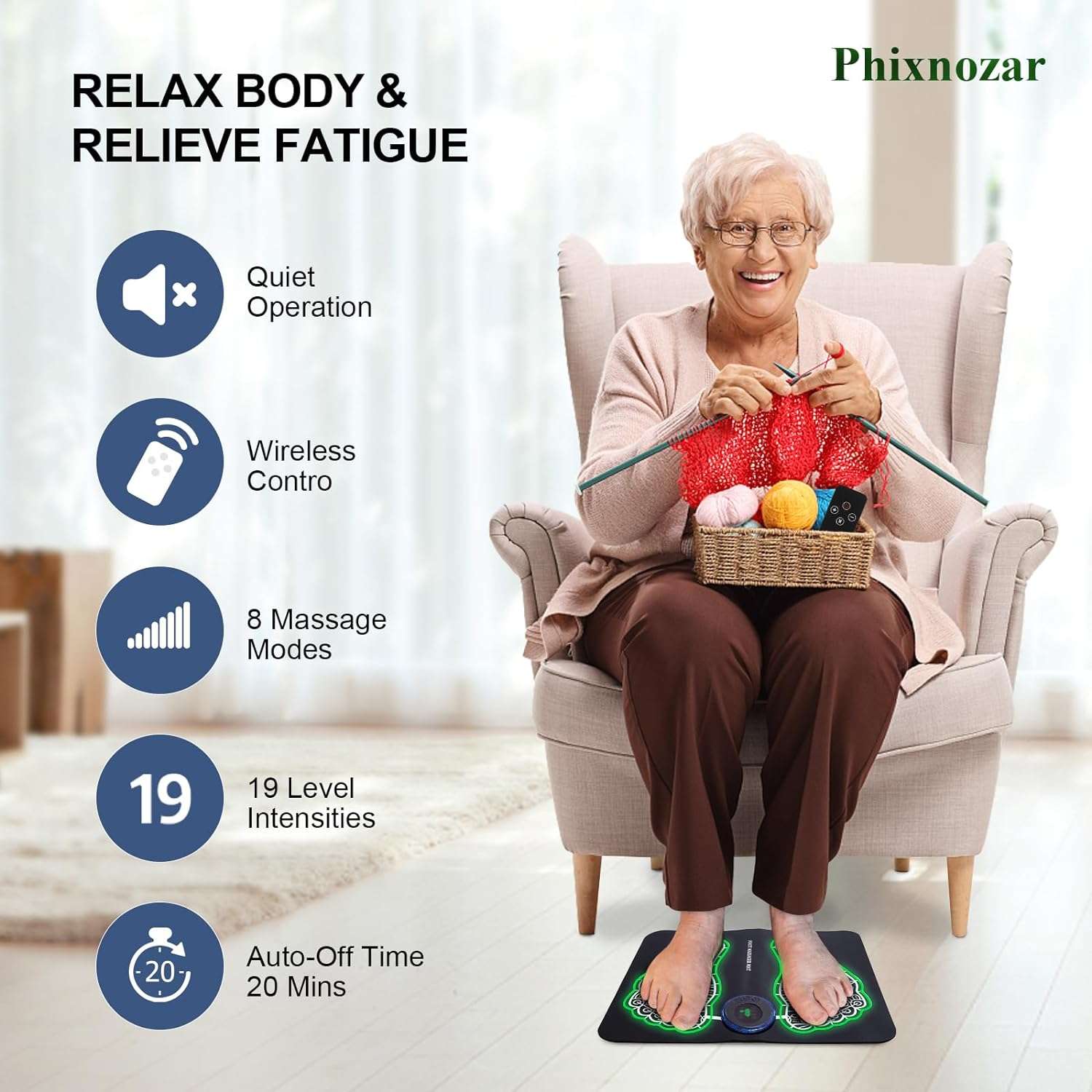 - 【Innovative Technology】The Phixnozar foot massager relaxes leg and feet.