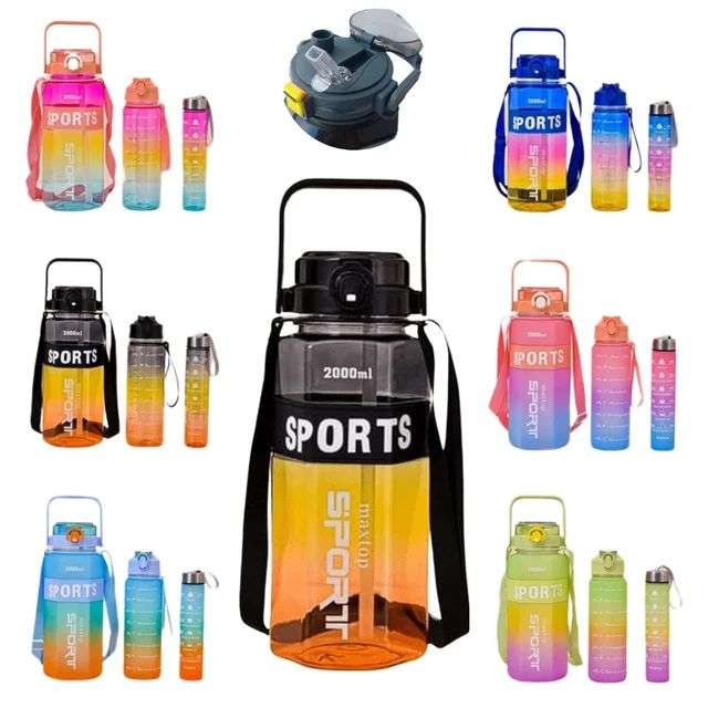 2000ml Motivational Water Bottle With Straw, 2L Gradient Color Drinking Water Bottle For Girls Gym With Handle, Portable WaterBottle For School, Fitness, Outdoor Sports, BPA Free Grade Plastic Leak Proof Travel Water Bottles For Girls And Boys