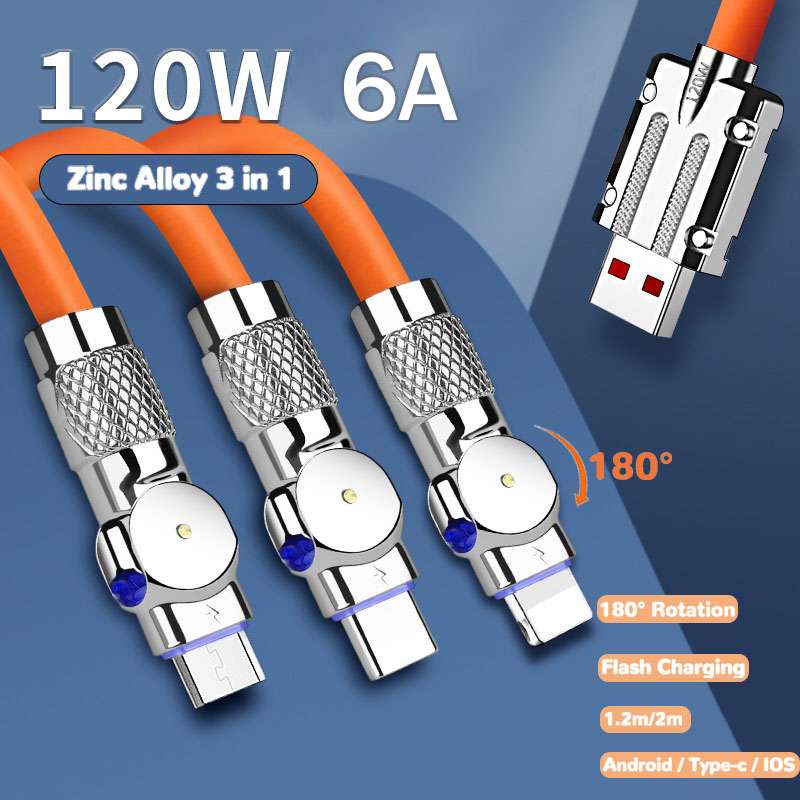 3 IN 1 ZINC ALLOY FAST CHARGING CABLE 180 °