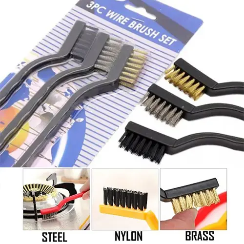 Type- Mini Wire BrushSet· High Quality· Size- 6 Inches Approx· Material- Brass,Stainless Steel, Nylon· Usage- Rust removal, cleanmetal surfaces, tight areas, seams, threads, welded joints· Package Includes- 3pc MiniBrush Set