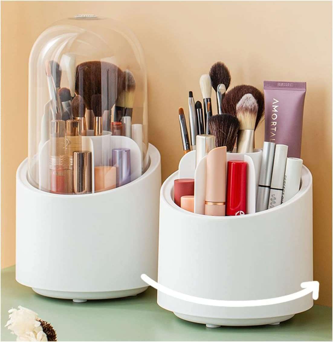 It is easy and smooth to access the makeup brush bucket with its 360 degree rotating design and transparent lid. With a large capacity of 7 grids, this dustproof and waterproof bucket organizes your lipsticks, eyebrow pencils and eyeliners effectively.