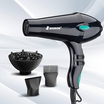 - ✔6000-Watt Powerful Motor for 2X Faster Blow-dry: Shinon hair dryer is equipped with an efficient ADC motor and advanced internal aerodynamics that ensure strong and steady airflow. Paired with the constant heat, it drastically cuts blow-dry time by speeding up the evaporating process. Faster drying means time-saving and less damage to your hair.