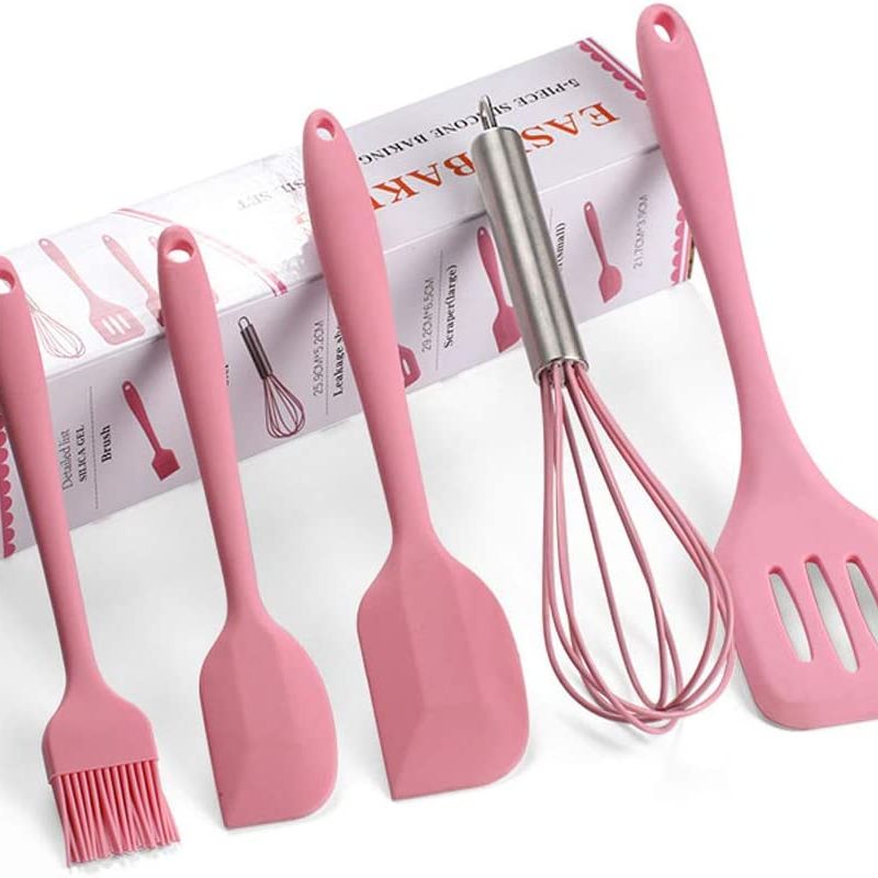 - 5-Piece Kitchen Utensil Set: This Set of 5 Essential kitchen Tools Includes 1*Small scraper 1*Large scraper 1*Small brush 1*Egg beater 1*Leakage shove. These are built out of one solid piece of silicone, making them more durable and comfortable to hold.