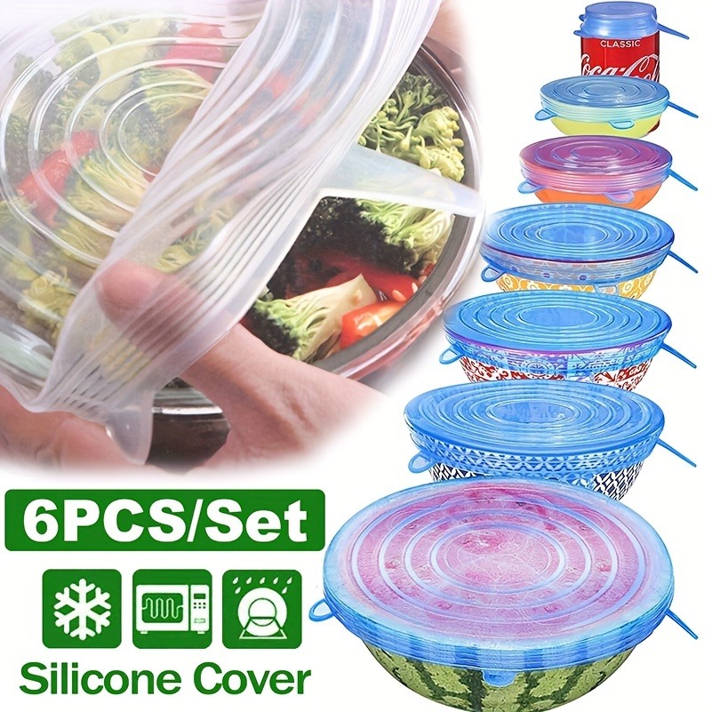 6pcs, Silicone Stretch Lids, Food Grade Silicone Bowl Covers, Reusable Silicone Lids, For Food Containers, Kitchen Gadgets, Kitchen Stuff, Kitchen Accessories, Home Kitchen Items