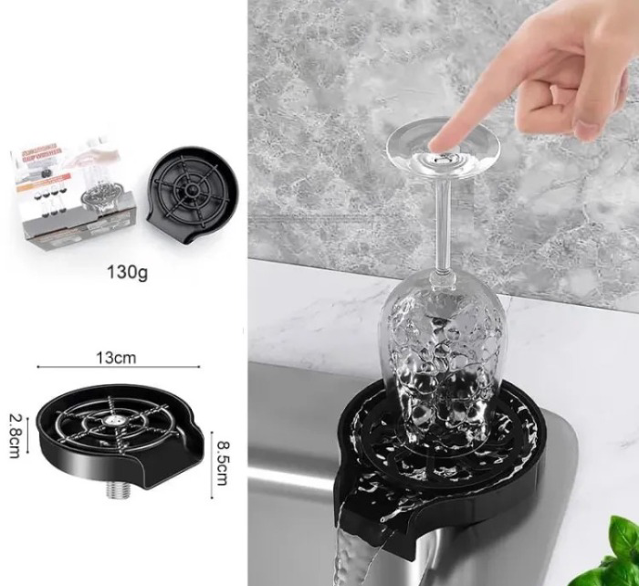 - [GLASS RINSER]Glass Rinser black for kitchen Sink, stylish classic black match perfectly with your kitchen.Free your hands, wash effortlessly, clean without stains,resists water spots and fingerprints. You can easily solve the problems of difficult to clean baby bottles, dirty coffee and tea leaves. The glass rinser is quality of life improvement!An essential kitchen tool.