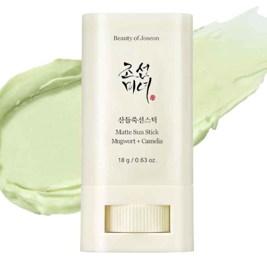 The Beauty of Joseon Matte Sun Stick: Mugwort + Camelia (SPF50+ PA++++) is a portable, non-greasy chemical sunscreen designed for easy, hygienic, and mess-free application throughout the day, even over makeup. Developed with influencer Ramon @glowbyramon, it uses sebum-control silica powder for a matte finish, while Mugwort and Camellia extracts soothe and nourish the skin.