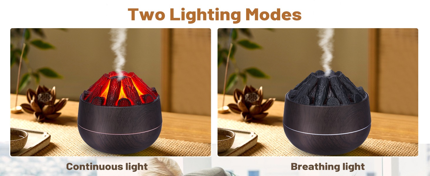 - Simulated Charcoal Fire Humidifier: The fake flame humidifier aroma diffuser has a built-in LED light that creates a realistic charcoal fire effect, looks like real burning, but it has no heat. This humidifier for room moisture adds a relax, soothe, calm atmosphere to your home, office, bedroom or more.