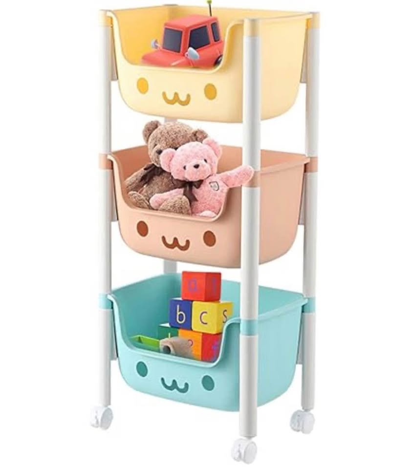- Keep your baby’s essentials organized with this colorful 3-layer kids’ trolley, perfect for diapers, toys, and bottles.