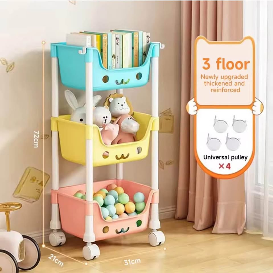 KIDS 3 LAYER MULTY COLOUR STORAGE TROLLY