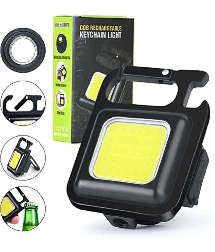 • High Brightness- This keychain flashlight can emit 800lumens lights at maximum. It provide a bright light with wide angle. The large COB Technical LED allows this light to be used as a small work light and emergency light.Portable Design- The strong magnet base and rotatable handle allows you release your hands during the work. The magnet design allows the lamp to attach to any metal, and 180°foldable handle allows the lamp to be positioned at different angles or hung in certain places.3 Light Modes- The compact flashlight has 3 light modes to meet your different need: cob high mode,cob low mode and cob strobe mode. Long press power button to the maximum brightness.USB Rechargeable- This USB rechargeable flashlight is powered by a large capacity built-in rechargeable battery, micro USB to USB charging cable included.Widely Used- The portable flashlight has a carabiner that can be easily attached to key ring or bags, and it is water and impact resistant. Alternatively, it’s also a good bottle opener. You can use it in a variety of scenarios, such as camping, walking the dog, looking for things, repairing.