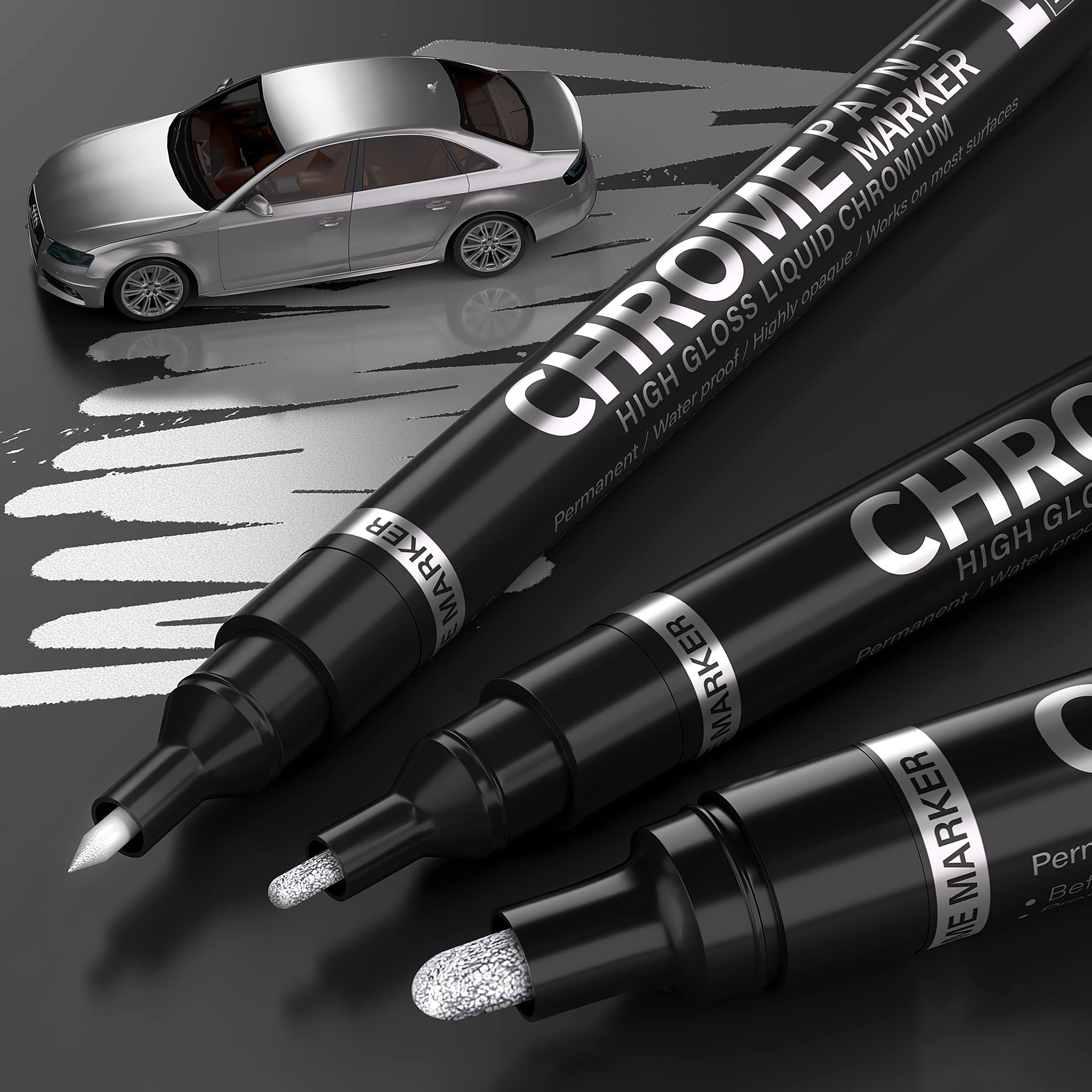 Smooth Writing: The Chrome Pen ‘s 0.7mm tip is suitable for Model Tracing, 3mm tip is suitable for Graffiti, contains 3 paint pens of different sizes nib to meet your creative needs. Designed with innovative valve, the ink flows smoothly with no stops, leaks, or bleeding., For the best mirror effect, please apply it on a smooth and non-absorbent surface
