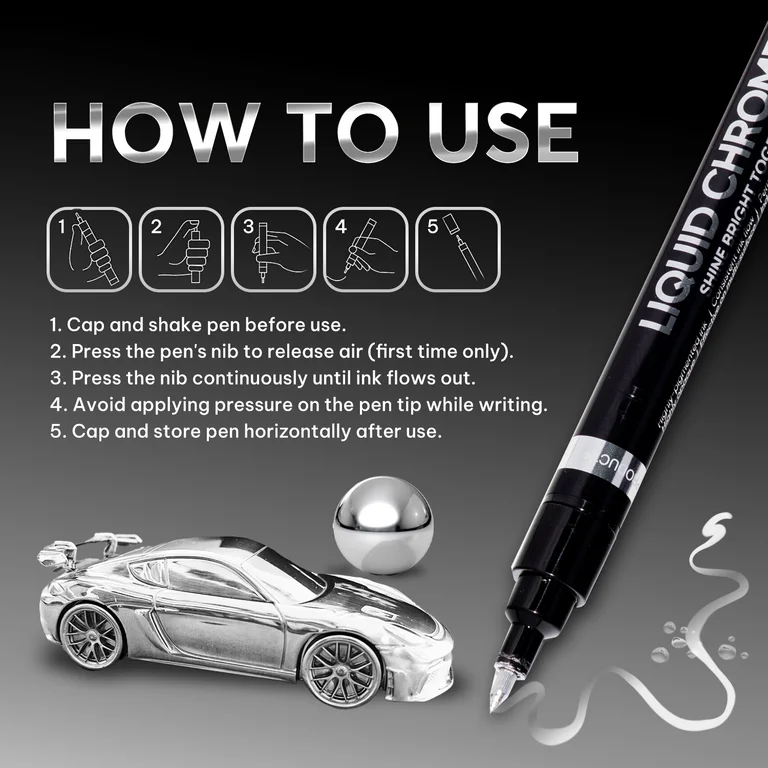Create A Mirror Effect: The Chrome Paint Marker can produce a mirror effect on any smooth and non-absorbent material surface.