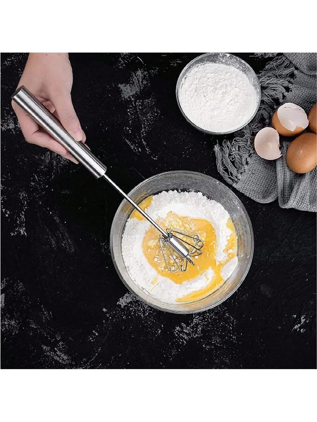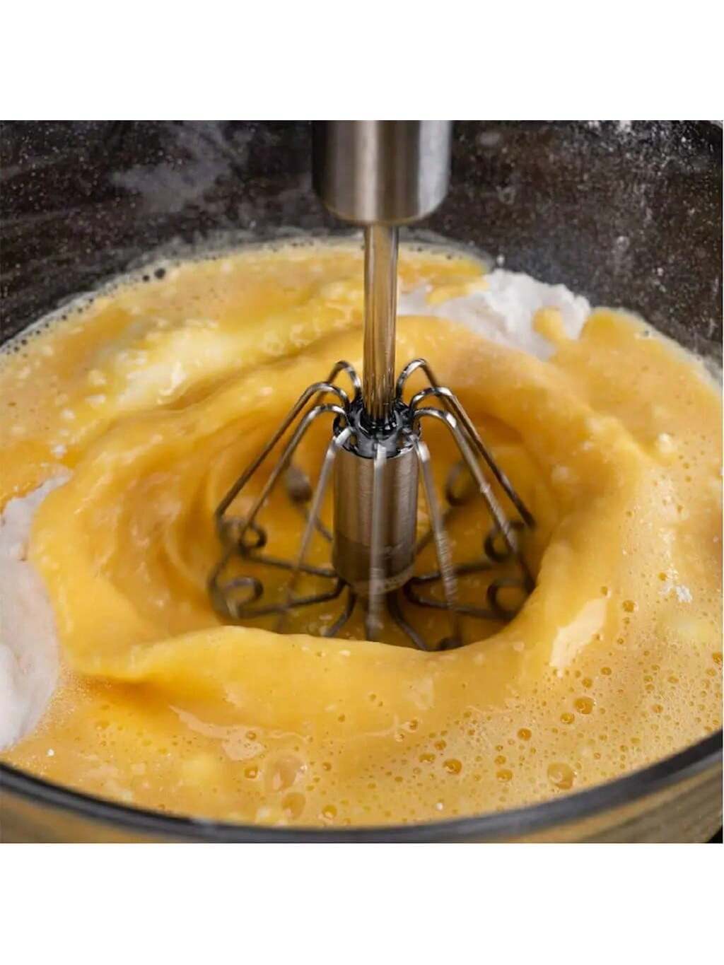 Effortless spin whisk. Just pressing and whisking. Mechanical assembly allows easy fluid motion in one push with minimal force and effort. Prevents arm and hand strains. Perfect tool for home & kitchen.