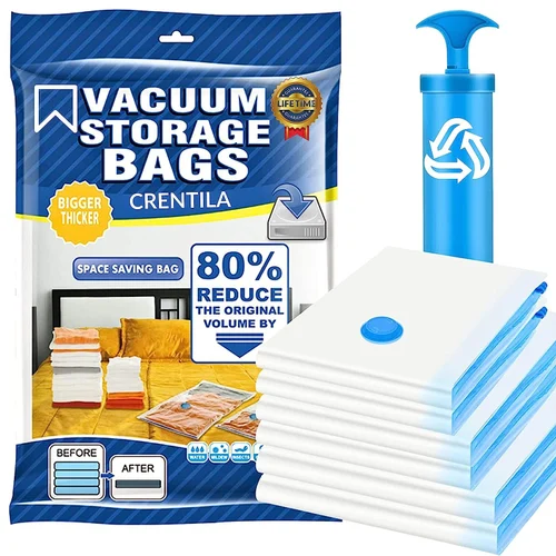 - TRAVEL PUMP INCLUDED : Our vacuum bags for storage work with any standard vacuum cleaner but they also come with a handy FREE travel hand pump to make travelling a breeze as you can easily repack your clothes for your journey home, saving you tons of space in your bag. Vaccum bags and Pump colour may vary.